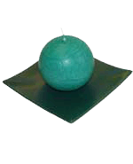 - Eisblumenkerze rund GRÜN. Dazu ein versilberter Kerzenlöscher.